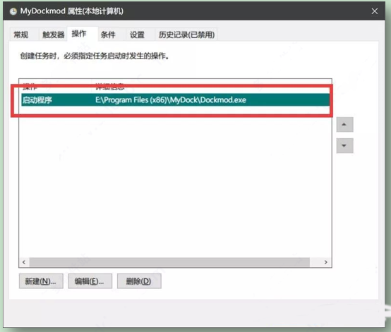 点击左侧任务计划程序库,查看中间是否有mydockmod计划任务,如果有双击mydockmod计划任务,如果没有点击右侧创建任务。