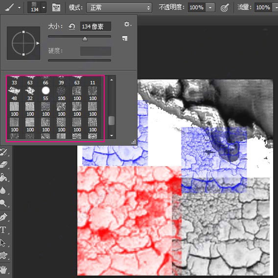 4、找到最后的画笔就是ps龟裂笔刷,有多种类别,用户可以调整大小直接放在图片上使用。