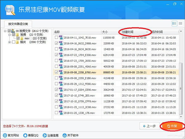 5、最后用鼠标左键点击树形控件或列表控件上的小方框,勾选需要恢复的文件,并点右下“恢复”按钮:
