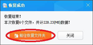 6、恢复完成,弹出提示信息,点击“前往恢复文件夹”,可以到恢复文件夹看刚才恢复的文件: