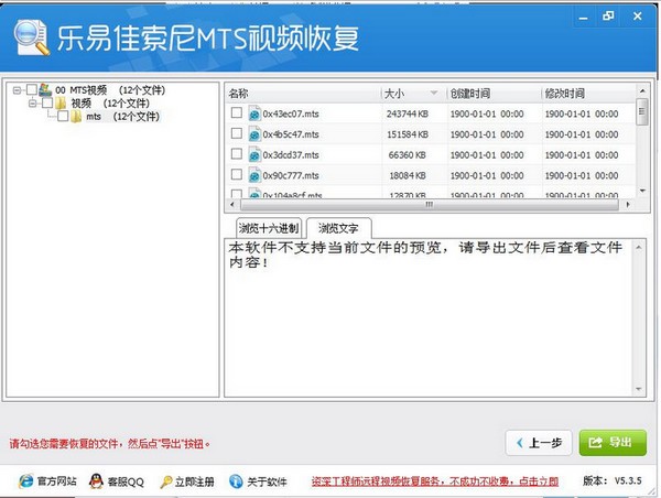 1、可以恢复误删除、误格式化、病毒破坏等各种原因导致的索尼MTS视频文件丢失。