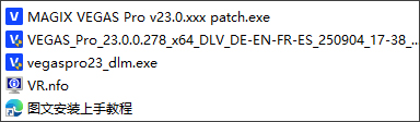 1、下载解压,得到vegas pro 23中文版+patch激活补丁;