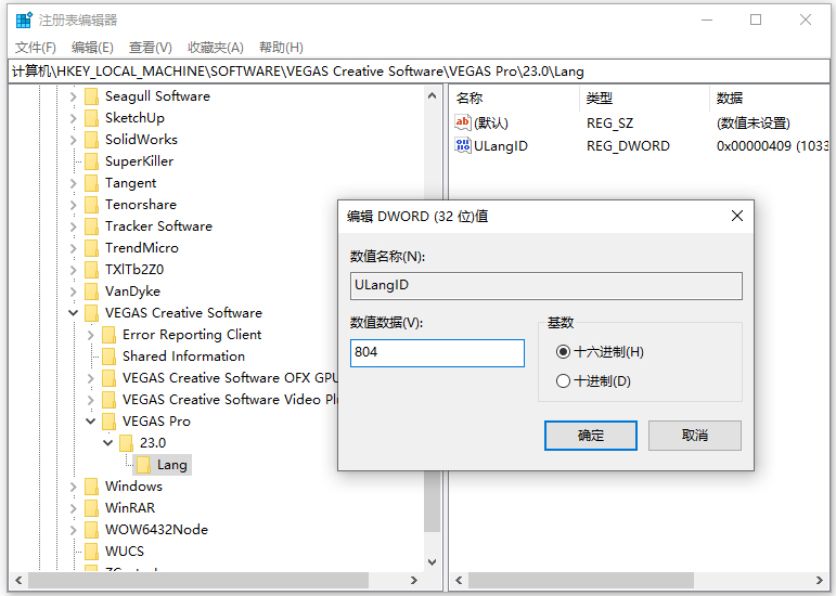 计算机\HKEY_LOCAL_MACHINE\SOFTWARE\VEGAS Creative Software\VEGAS Pro\23.0\Lang