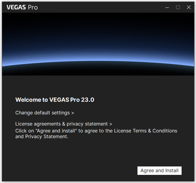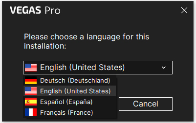 2、先双击文件VEGAS_Pro_23.0.0.278_x64_DLV_DE-EN-FR-ES_250904_17-38_F7E48536_23_0_0_278.exe安装软件,按默认语言安装;