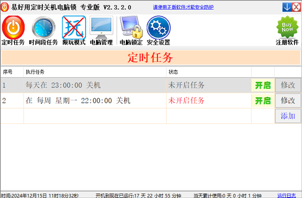 5、指定电脑开机多久后指行命令,易好用定时关机软件官方版可以指定多个时间段限制使用电脑