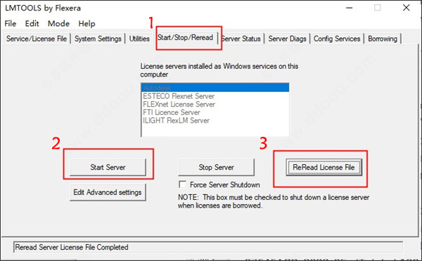 14、然后在“start/stop/read”点击“start server”,然后再点击“rereadlicense file”;