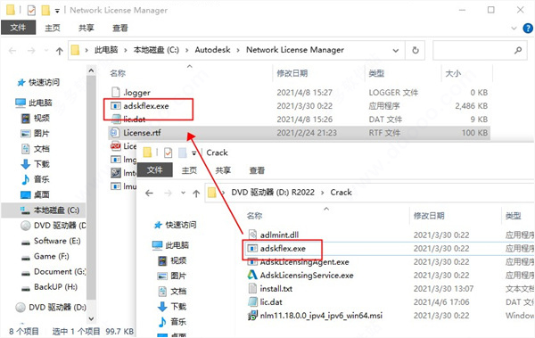 8、将crack中的AdskLicensingAgent.exe、adlmint.dll文件复制到下列路径中,替换;