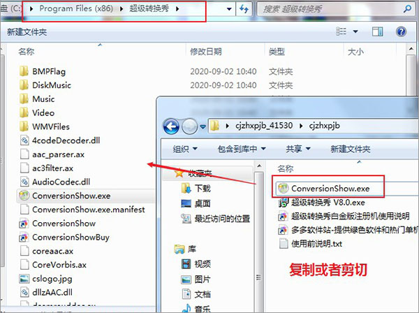4、找到之前解压好的文件,将里面的破解补丁ConversionShow.exe,复制或者替换到软件安装目录;