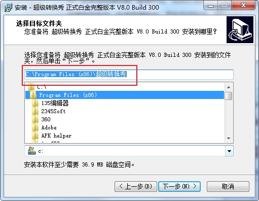 3、默认安装目录【C:\Program Files (x86)\超级转换秀】,依提示继续安装;