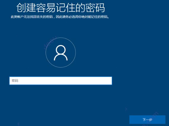 如果你输入的密码不满足上述条件,系统会提示密码不符,同时“下一步”按钮不再可用,请按“回车”键继续设置符合条件的密码;