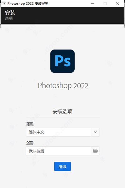 2、双击“Set-up.exe”,选择简体中文语言,自定义安装目录安装ps2022;