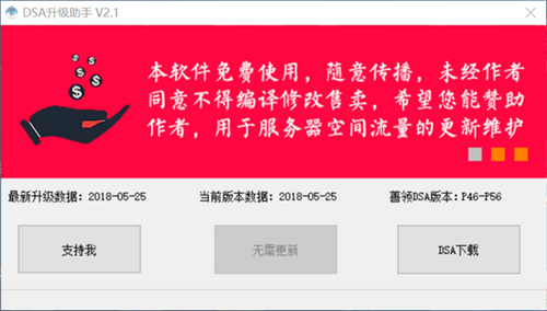 善领DSA升级工具是由吾爱破解吧的大神针对深圳市善领汽车电子科技有限公司推出的电子狗软件研发的一款辅助升级程序。它可以支持P46-P59版本升级,确保电子狗地图数据为当前最新版本,以便帮助用户提示沿途红绿灯、道路限速等信息点,保证安全驾驶,不吃罚单。