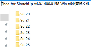 1、下载解压,得到thea render for sketchup 2020-2025,以及替换文件;