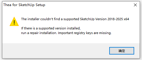 2、双击文件TheaForSketchUp_v4.0.1400.0158.exe开始安装,需要先安装好SketchUp 2020-2025任意版本,再安装软件;