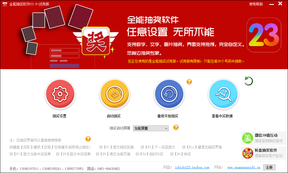 7、万能抽奖软件详细的使用教程可参考软件包中的说明书。