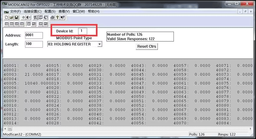 连接通讯连接后,根据设备实际情况修改设备地址。一般设备地址默认为1。