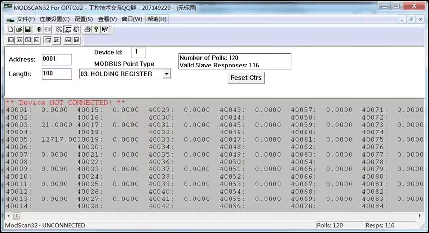 modscan32是一款作业在RTU或这ASCII传输模式下的MODBUS协议主设备的应用程序,完美的运行在Windows系统下。能够将一个或者多个MODbus从站设备通过串口,调制解调器或者网络连接电脑,这样一来就能够使用modbus调试工具读取和修改数据点!
