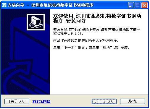 1、打开安装“深圳市组织机构数字证书驱动程序”,根据页面提示及默认安装路径点击下一步,直至提示安装成功。