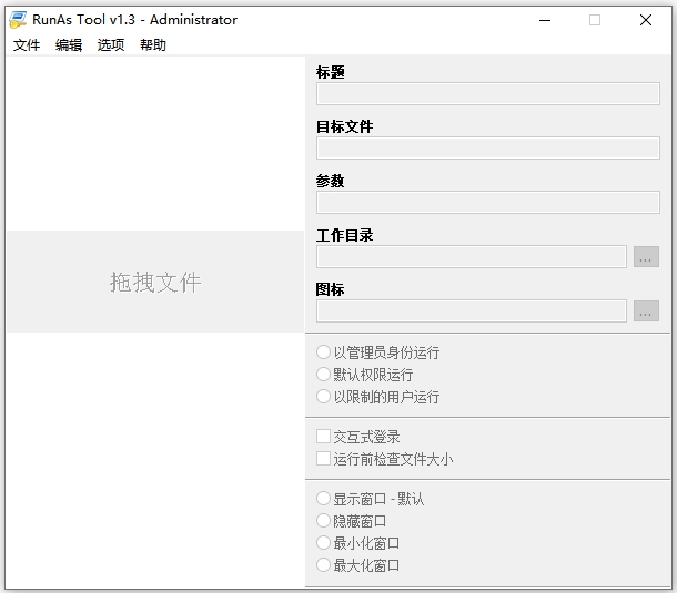 RunAs Tool官方版是国外比较实用的一款系统权限设置器,具有使用灵活,操作简单,绿色实用等特点。它采用内置的“运行方式”命令,可以根据系统不同的用户选择特点的启动方式,支持软件标题、目标文件、参数、工作目录、图标的设置,能够帮助用户对特定软件自动以管理员身份运行或以限制的用户运行,提高软件使用效率,感兴趣的朋友不妨下载体验。