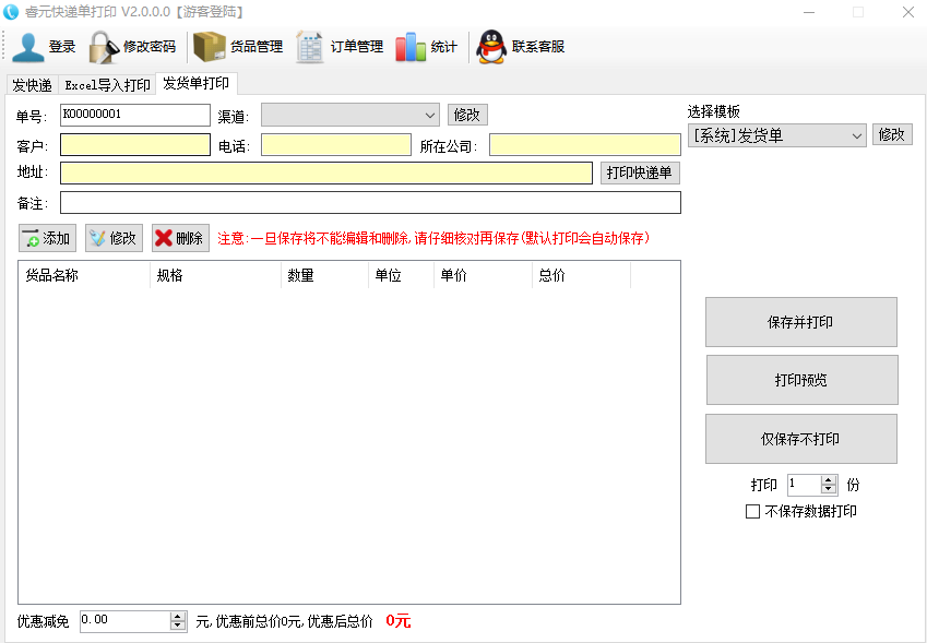 5、集成K+模板引擎,快速、全功能打印您需要的各种单据。除了快递单,还可以打印发货单等票据。