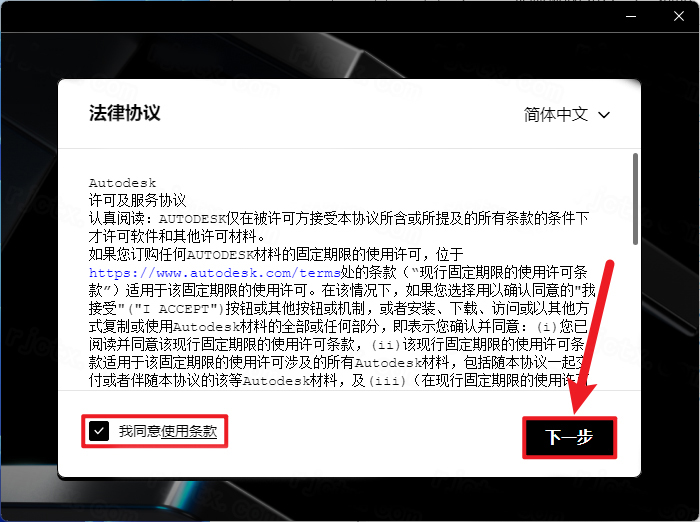 2、先运行Navisworks 2025\Setup文件夹内的【Setup.exe】,同意使用条款;