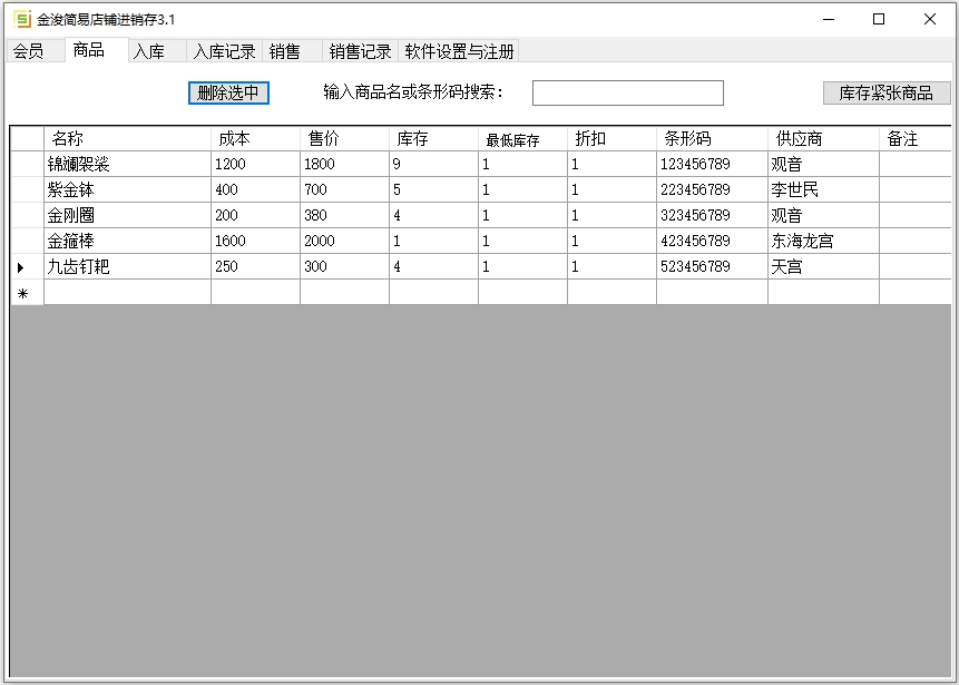 4、支持会员、商品、入库、入库记录、销售、销售记录等功能