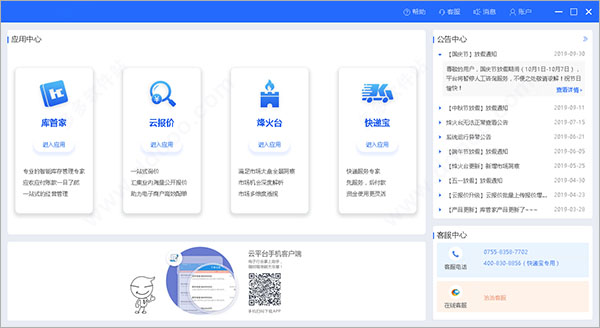 华强云是专门为电子行业提供的一款专业的企业管理系统,功能全面又强大,可以轻松的为企业内部信息化管理及商业化数据服务应用提供整体解决方案。其中为用户提供了快递宝、烽火台、CRM、云报价、库管家、云商城、收支宝、进销存等功能供用户自由使用,高效的帮助大家管理自己的门店。像以往我们寄快递都需要电话或网上慢慢下单接着等待物流公司来揽件,而通过该软件中的快速宝之需要将下单信息发送给物流公司,再等待揽件即可,同时发件越多,快递费可享受的折扣力度越大,并还支持多家快递费用,月底统一进行结算,非常的方便。因此可以说华强云平台通过了先进的互联网技术,轻松的推动了电子行业交易方式变革,增强企业可持续化发展能力和行业竞争力。