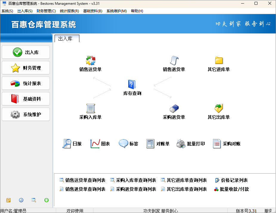百惠仓库管理系统是一款专业强大的仓库管理软件,界面简洁明了,操作简单易上手,遵循“简单、实用、好用”的设计。该软件为用户提供了财务管理、基础资料、销售送货单、采购入库单、销售退货单、库存查询、出入库等功能,能很好的帮助用户记录每一次的销售单据,让您的每一笔账目都有源可寻,也能轻松的管理您的每一次进出库的单据,让您在盘点的时候更加方便快速,不犯迷糊。最重要的是,百惠仓库管理系统还支持帮助管理客户资料,让您随时掌握客户的动向,欢迎有需要的用户们免费下载体验。