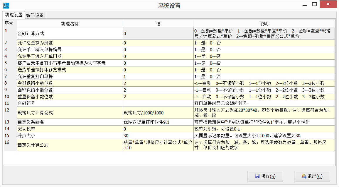 6、支持数量、宽、高、重量、单价自定义计算金额公式,自动根据金额计算公式计算金额;
