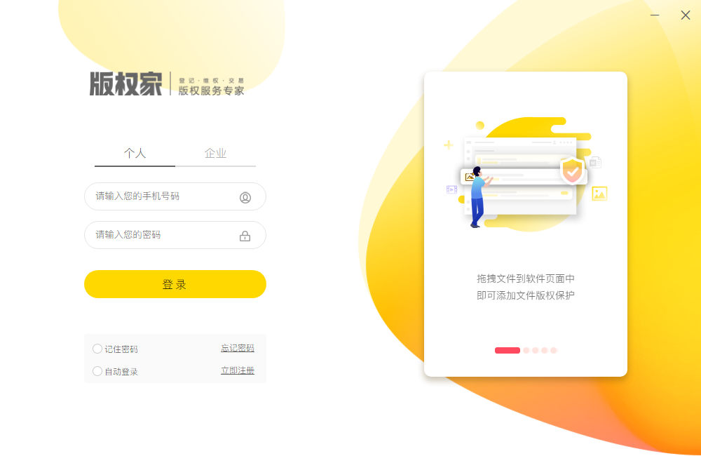 版权家平台账户对于个人用户支持手机号注册,企业用户支持邮箱号注册并绑定联系人手机号;