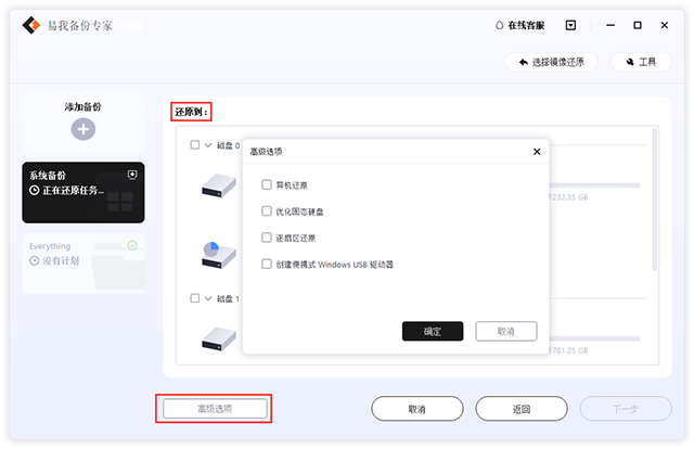 这些高级设置可以帮助您在某些特殊情况下更稳定、更顺利地恢复备份。但是,如果没有这些高级设置,易我备份专家家庭版仍然可以为您提供完整的恢复。
