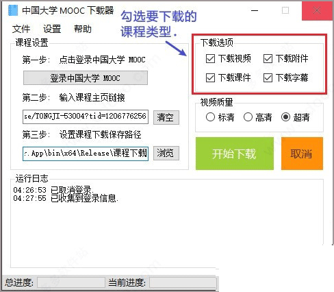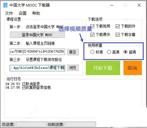 中国大学mooc下载器是一款功能强大的慕课视频下载软件,通过它可以帮助用户快速将“中国大学MOOC”网站中的视频课程进行下载,只需登录中国大学MOOC,输入课程主页链接,设置课程下载保存路径,一键即可开始下载,快速将您需要的视频下载到本地,便于使用,让您更好的利用网络资源,学更多专业知识,不断丰富自己。中国大学mooc下载器提供了丰富的学习资源及培训资源,涵盖了视频、课件、附件、字幕等,全部都能一起下载,也支持单独下载其中一种类型,支持自定义视频清晰度,如果您来不及学完课程或者上网不方便,就可以使用这款软件学习,有需要的朋友欢迎下载体验。