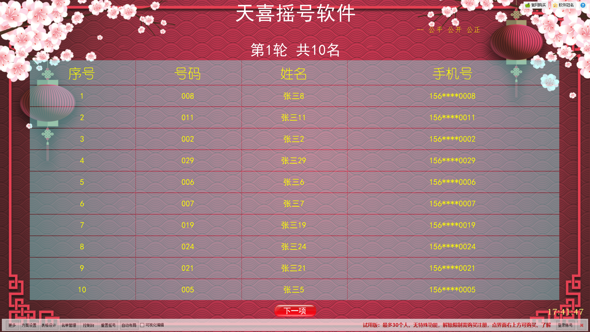 9、通过天喜摇号软件,您可以制作活动摇号。