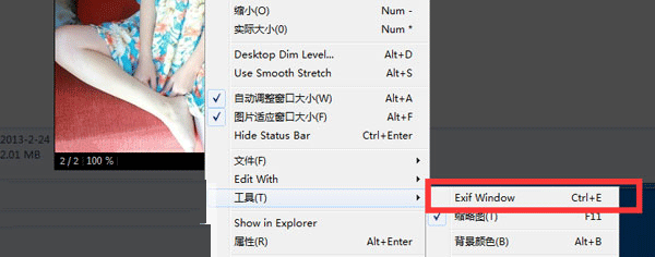 3、如果需要查看Exif信息,可用鼠标右键点击选择,如下图所示: