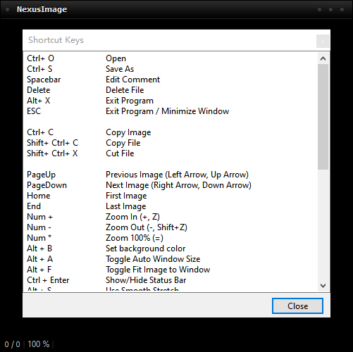 5、Nexusimage同样支持丰富的快捷键提供操作,熟练使用这些快捷键,能够帮助用户的体验上更方便,快捷,用户可以自行在软件的帮助文件下学习即可: