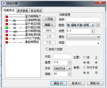 线缆的图层管理功能,可以在强电平面、弱电平面及强电系统中添加、删除、编辑线缆的图层类别