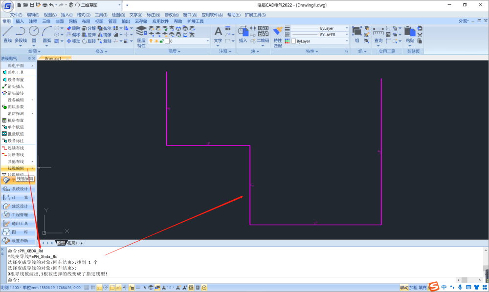 使用“线变导线”命令,首先绘制一条线段,然后点击电气软件工具箱-强电平面/弱电平面-线缆编辑-线变导线,点击后可在线变导线弹窗中下拉框内选择需要变成的线缆