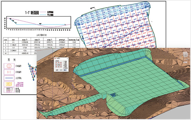 整体土方计算:在生成自然三角面与设计三角面后,一次性计算出指定范围内的土方量