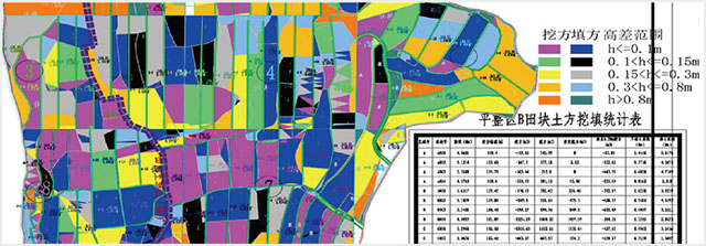 田块法适用于地形变化不连续的地形情况,如农田(梯田)规整规划等的土方计算,还支持输入表皮收集厚度,并计算出每个田块的挖方量(不含表土挖方量)、填方量、表皮土挖方量及不同高差范围内的动土面积。自动计算各田块土方量,统计出各田块土方量表。该方法还支持自动生成田块三维模型,且对田块间的净土方量进行调配。