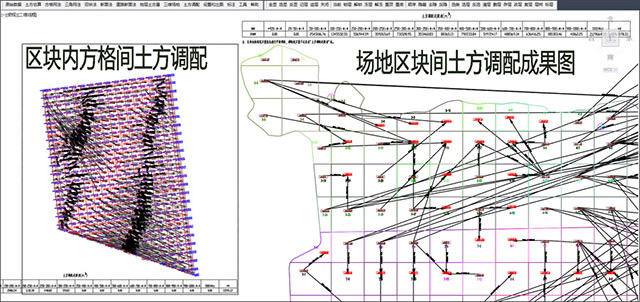 对挖土和填土进行综合协调处理,以达到土方工程施工费用少,施工方便,工程短的目标,软件支持各区块间土方量调配、同时支持区块内方格间土方量调配,一键生成土方调配图、调配表、调配工程量表、土方调配运距表,同时支持各表格导出excel。
