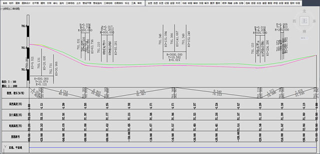 提供道路路线设计,支持对道路布置进行具体设计,包括道路平面桩号布置、平面路幅生成、道路纵断面生成、竖曲线设计、平面路幅分幅出图、道路横断面生成及放坡、道路土石方计算以及横断面分幅出图等设计内容。