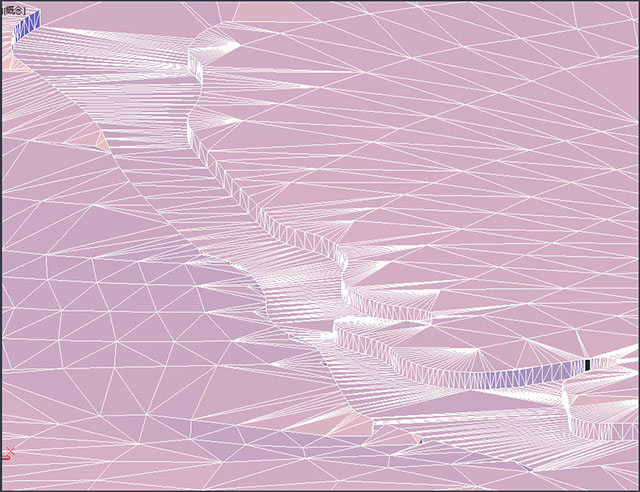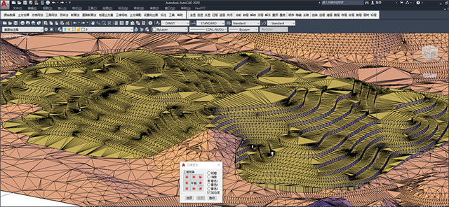 在具备三维数据的情况下,可以自动生成自然三维地表面、设计三维地表面以及平土三维地表面,并且提供强大的编辑功能,可以将局部范围的三角面转成共面的水平面或倾斜面,对三角面进行内裁剪或切割; 为了直观显示高程关系,可以给三维面加水平底座。本模块还提供了强大的三维面分析功能,针对已生成的自然三维面可以进行不同高程段的分析、不同坡度坡向的分析等, 并对分析区域范围内的填挖方量进行估算。
