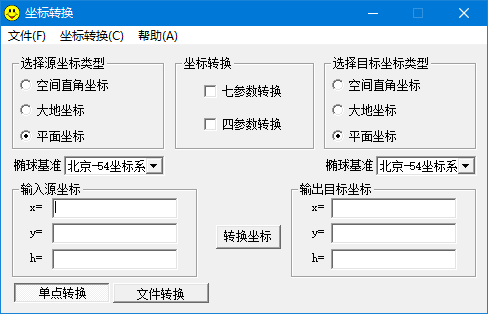 坐标转换方法可以适用BLH-xyH、xyH-BLH、BLH-XYZ、XYZ-BLH。