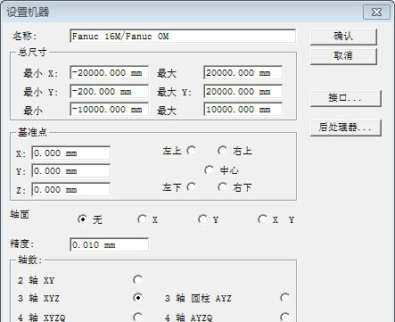 3:在打开的“设置机器”对话框中,首先打开右边的“后处理器”,在“设置后处理器”中找到如下字行: