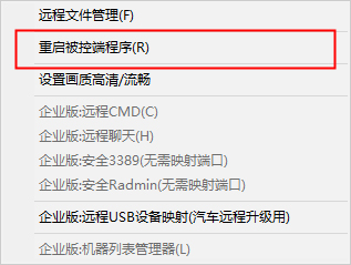 此时表示因各种原因,被控端没有重连,点击控制端上的重启远程端程序即可。强行让被控端程序重连一次即可。