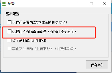 为了远程的速度,默认移除了桌面背景,合法关闭远程界面时,将自动恢复原来的桌面。如您需要远程时查看桌面,请在设置中设置如下勾选。