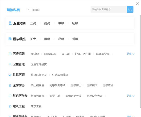 9、涵盖科目:临床医学、口腔医学、输血技术、微生物检验、理化检验、营养师、主管技师等。