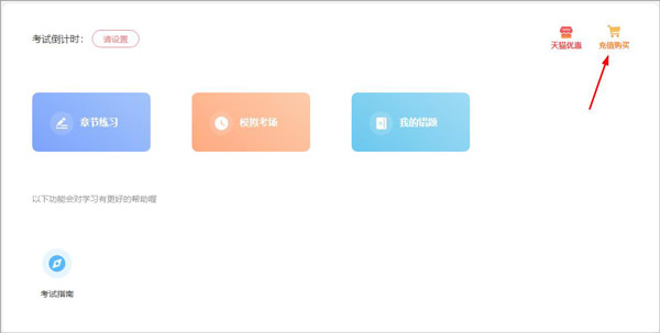 4、点击软件充值,点击“在线购买题库”(收到充值码的用户直接输入充值码开通即可)
