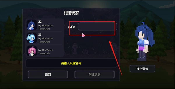 7、创建玩家需要先取一个游戏角色名称或者是可以给角色换一个姿势。
