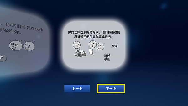 5、你的伙伴扮演的是专家,他们将通过使用拆弹手册引导你完成任务,拆弹者是不能看到拆弹手册的;